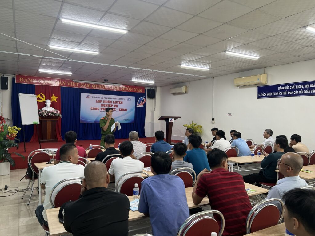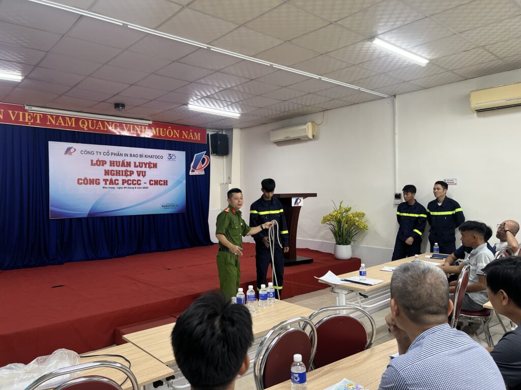 Ngày 24-26/6/2023, Phòng Cảnh sát PCCC và CNCH phối hợp với Công ty Cổ phần In Bao bì Khatoco đã tổ chức huấn luyện nghiệp vụ PCCC&CNCH cho cán bộ công nhân viên trong Công ty.