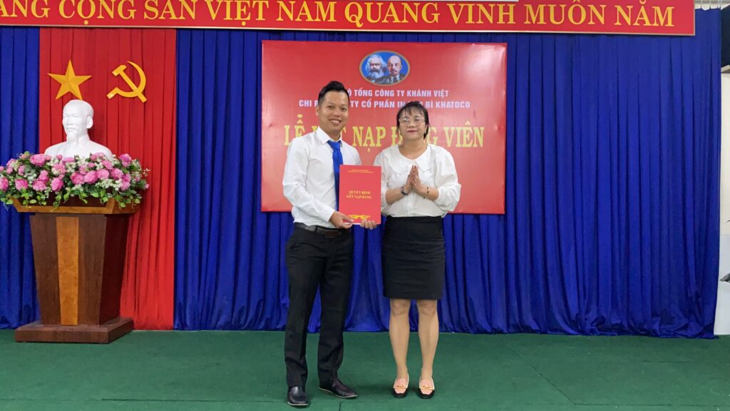 Dự lễ kết nạp có các đồng chí trong Chi ủy và toàn thể đảng viên của Chi bộ Công ty Cổ phần In Bao bì Khatoco tham dự.