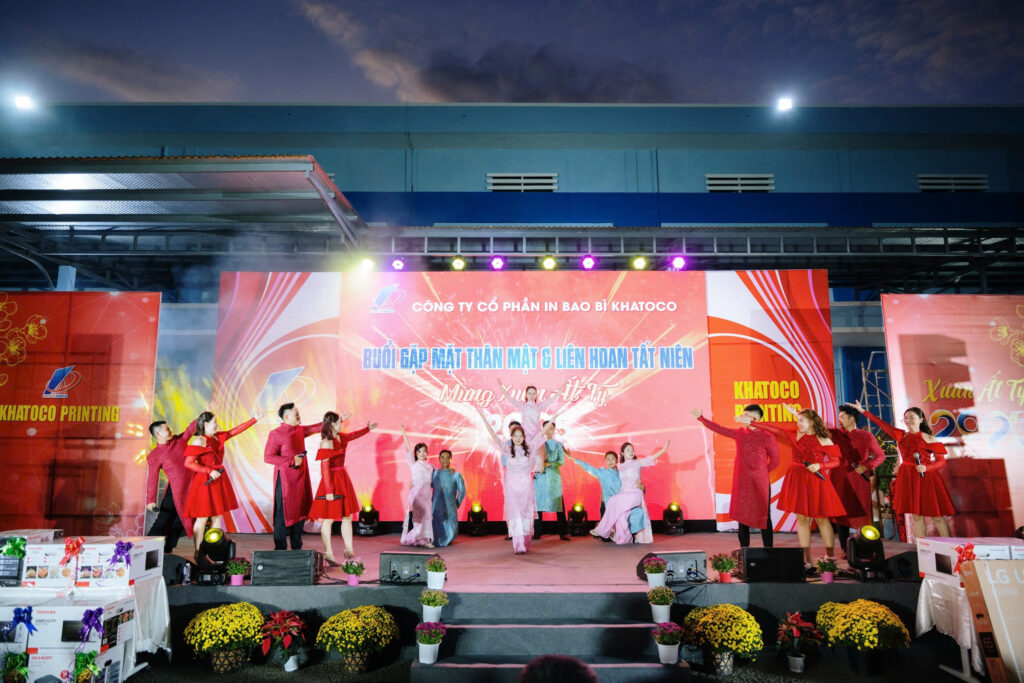 Chiều ngày 18/01/2025, tại sân khấu ngoài trời Công ty Cổ phần In bao bì Khatoco, hơn 400 người lao động cùng các cán bộ đã nghỉ hưu đã tụ họp trong không khí ấm áp và vui tươi để tham dự tiệc tất niên chào đón năm mới.