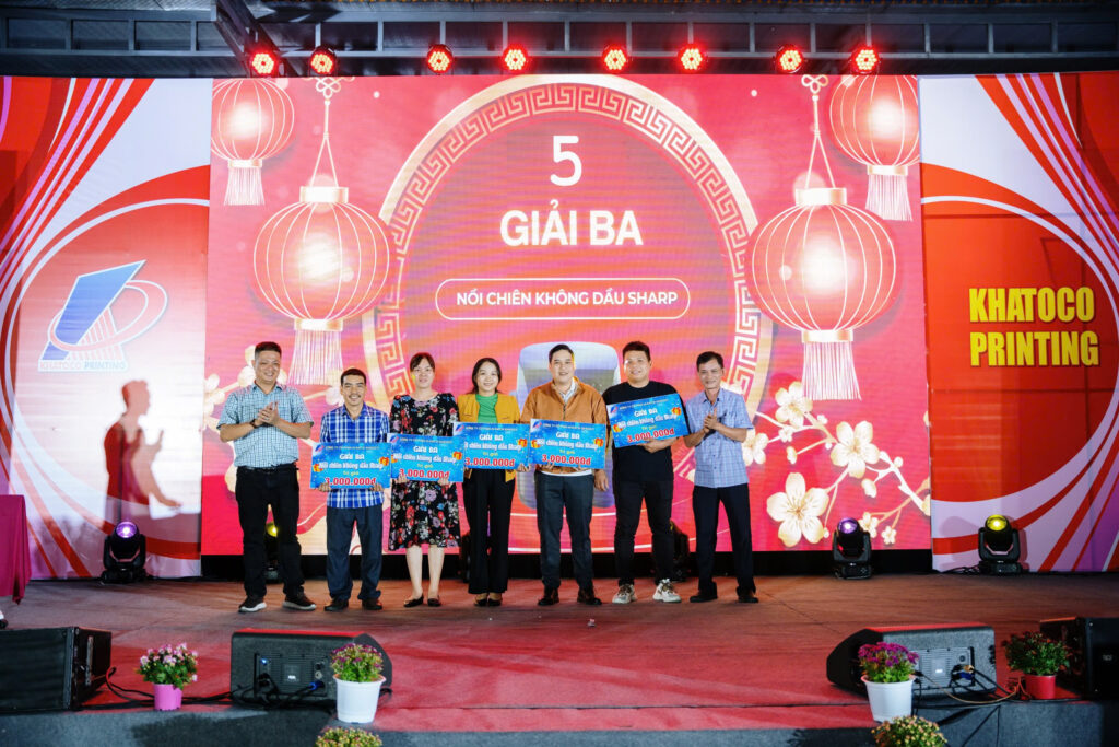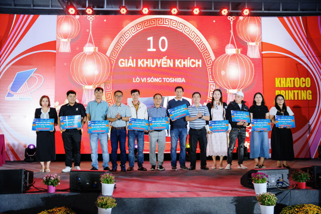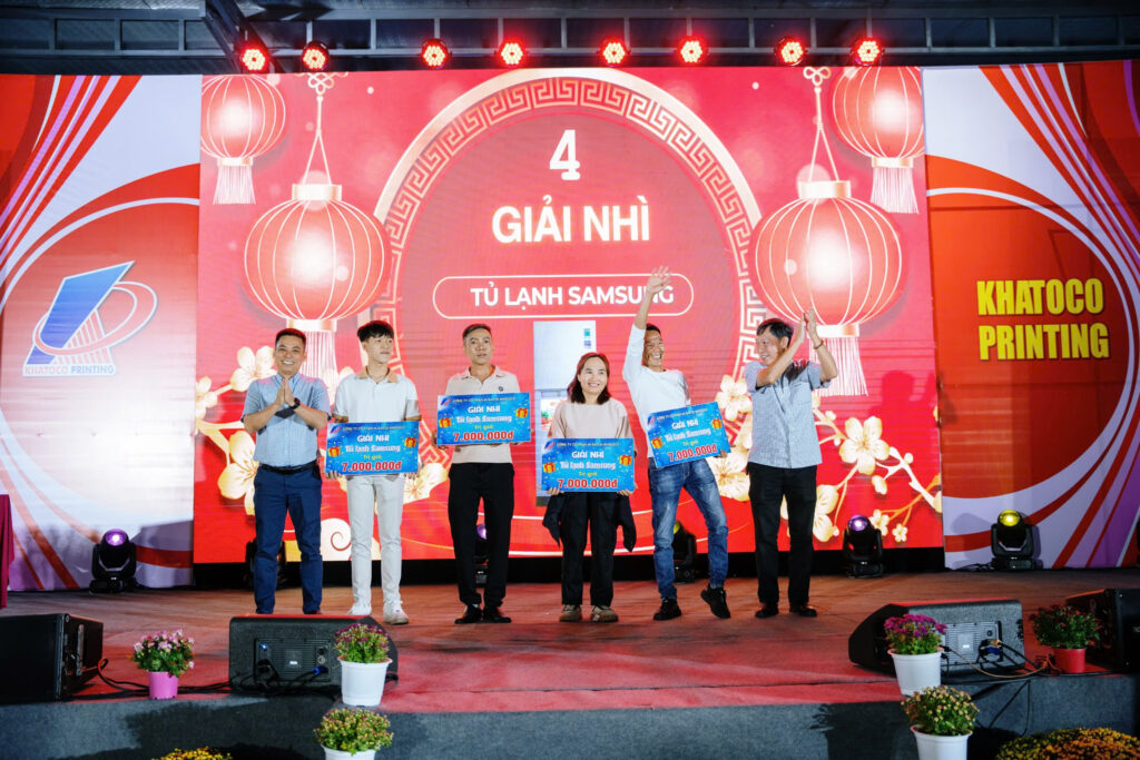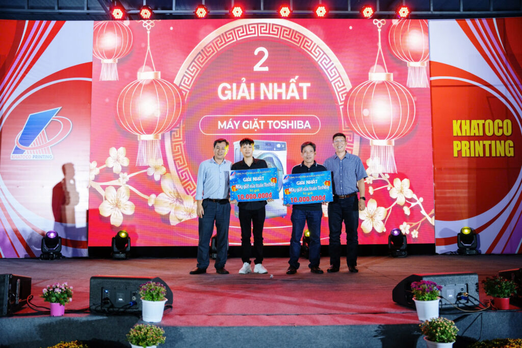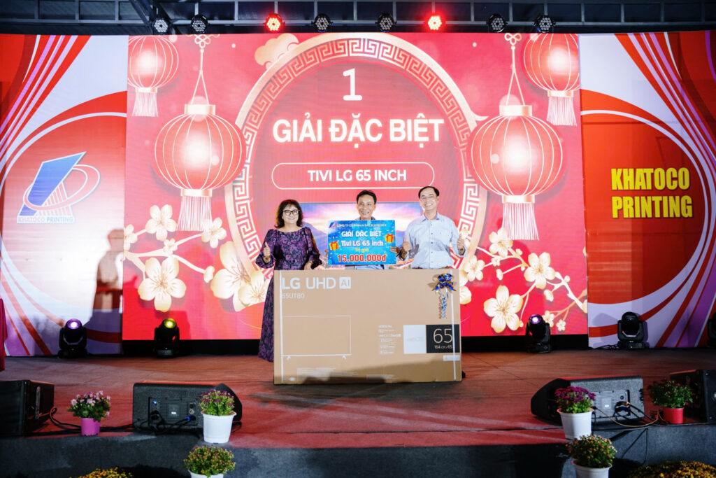 Điểm nhấn thú vị của chương trình là phần bốc thăm trúng thưởng may mắn với 21 phần quà giá trị như tivi, máy giặt, tủ lạnh và nhiều món quà hấp dẫn khác. Đây không chỉ là dịp để tri ân người lao động mà còn tạo thêm niềm vui bất ngờ và gắn kết trong đại gia đình Công ty Cổ phần In bao bì Khatoco.
