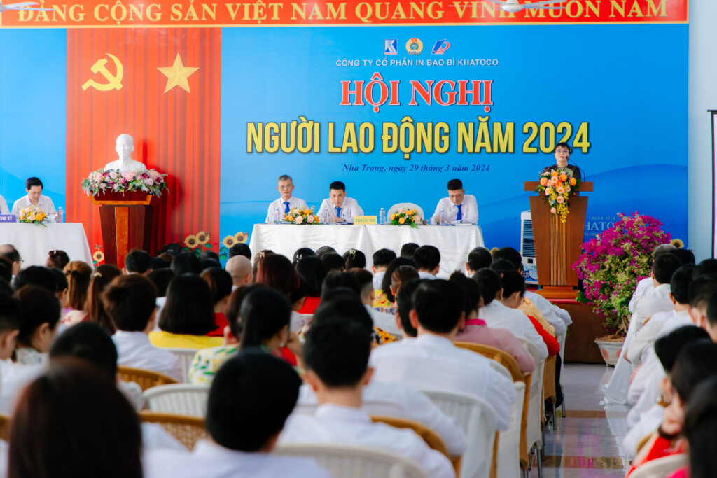 Sáng ngày 29/3/2024, Công ty Cổ phần In bao bì Khatoco đã tổ chức Hội nghị toàn thể Người lao động năm 2024. Tham dự hội nghị có các thành viên trong Hội đồng quản trị, Ban Giám đốc,  Ban chấp hành Công đoàn cơ sở cùng hơn 400 người lao động Công ty Cổ phần In Bao bì Khatoco.