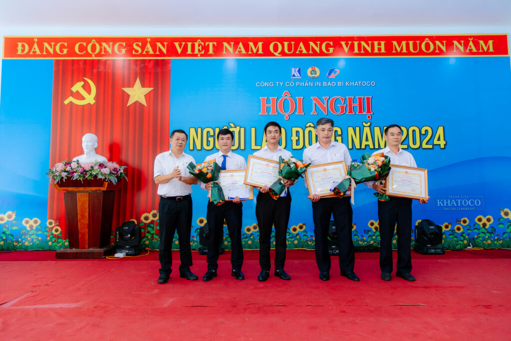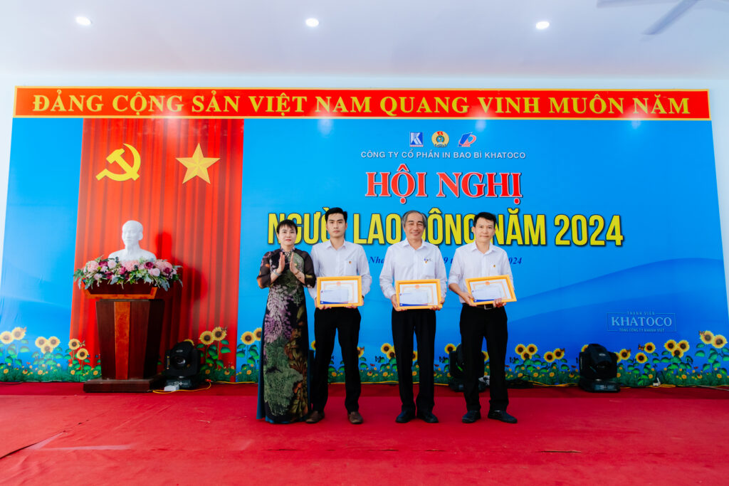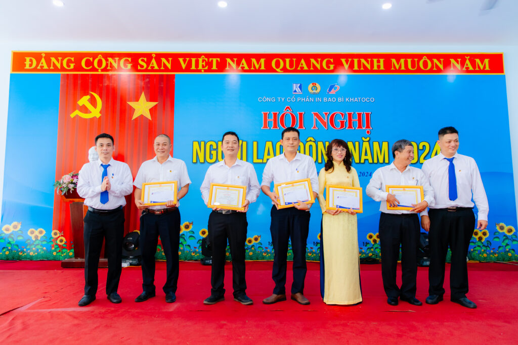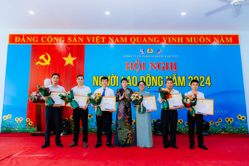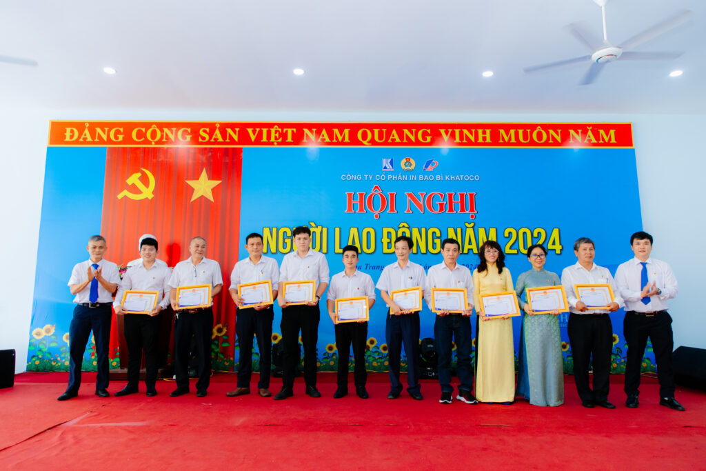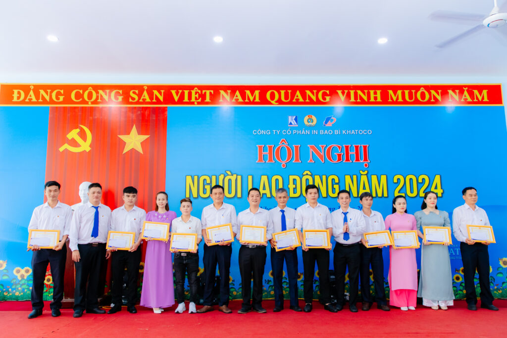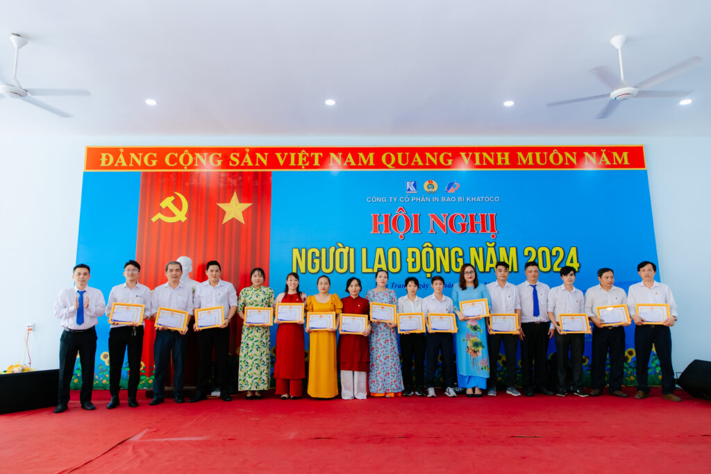 Bên cạnh đó, người sử dụng lao động đã tiếp nhận, giải đáp các thắc mắc, kiến nghị của người lao động nhằm nâng cao hiệu quả sản xuất kinh doanh của Công ty. Ngoài ra, Hội nghị cũng đã biểu quyết thống nhất bầu ra ban đối thoại định kỳ năm 2024. Với những kết quả đã đạt được, Hội nghị đã ghi nhận, biểu dương và trao tặng Bằng khen của Chủ tịch UBND tỉnh Khánh Hòa, Giấy khen của Tổng công ty Khánh Việt, Giấy khen của Công ty Cổ phần In bao bì Khatoco và danh hiệu “Chiến sĩ thi đua cơ sở” cho các tập thể và cá nhân có thành tích xuất sắc trong năm 2023.