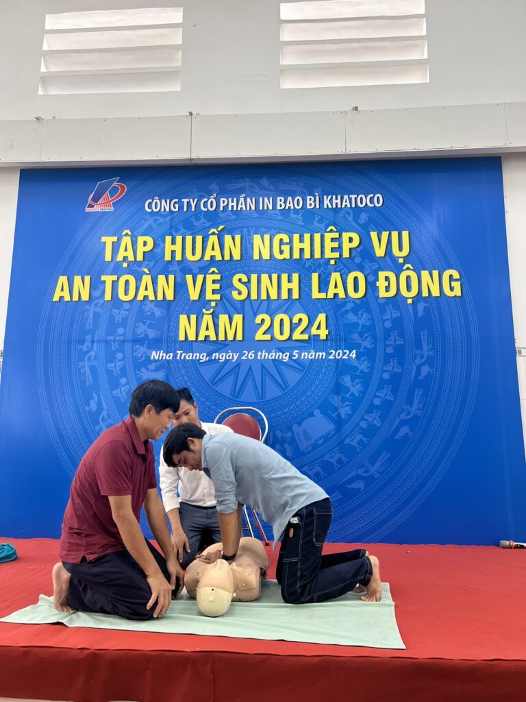 Nhân Tháng Công nhân năm 2024, sáng ngày 26/5, Công ty Cổ phần In bao bì Khatoco phối hợp với Công ty CP Đánh giá – Kiểm định an toàn 3 tổ chức lớp tập huấn nghiệp vụ an toàn, vệ sinh lao động (ATVSLĐ) cho 286 học viên là cán bộ quản lý, người lao động của Công ty.